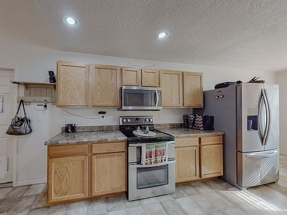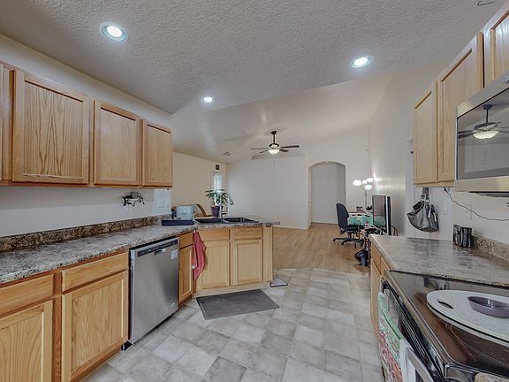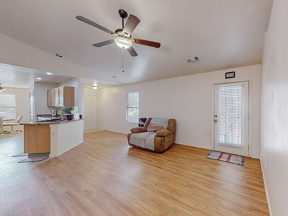 Beautifully maintained 3-bedroom, 2 full bathroom home bursting with wonderful amenities and minutes away from I-40, Old Town, the Zoo and so much more! Step through the front door into the inviting living/dining/kitchen/breakfast nook - the flowing floor plan is primed for entertaining; the large kitchen has room for more than one cook and is complete with tons of cabinetry and countertop space, stainless high-end appliances, including a double oven in the range, and a large pantry. No carpet in this house! The wood-look laminate continues into the three bedrooms, while the primary en-suite is complete with massive walk-in closet and a ginormous tub! Don't miss the new swamp cooler (installed Spring 2022!), no-maintenance yard, large backyard storage shed and so much more!