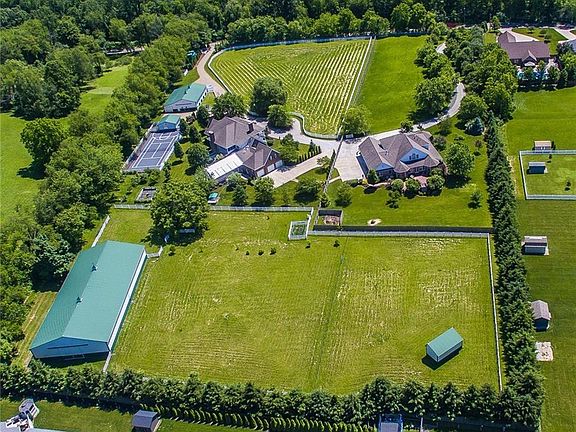 Spectacular Georgian Equestrian farmhouse w/dbl decker porch located on 6 organic acres. 7000 Sqft home boast charm & luxury living. Main flr composed of 2 story foyer, formal liv rm w/firepl, formal din rm w/firepl, library w/built-in bookshelves, firepl & study desk, gourmet chefs kit w/back stairwell giving access to 2nd flr, study rm, firepl in liv rm & 4 season pool w/retractable glass ceiling. 2nd Flr has 3 large bedrms w/dbl closets & private en-suites. The fireplaced master suite offering his/hers luxury walk-in closets & extravagant bathrm w/access to beautifully relaxing screened porch overlooking rear pasture & arena. Add'l study or sitting rm is located between master suite & 3rd bedrm this rm would be perfect sitting rm or study area f/children. 3rd Fl has 2 add'l bedrms, closets galore w/Jack & Jill bathrm. Finished lower level has a wine cellar, safe rm, rec rm w/pool table, 3rd living rm & kitchenette perfect pl f/entertaining. Add'l space in unfinished bsmt provides f/storage & secondary access to 3 car attach garage. Front barn has 7 horse stalls 5 w/padded stable flrs. ALL stalls have heated water troughs. Sm kitchenette, security rm & add'l 3 car tandom garage. Barn allows f/access to front pasture. 2nd Barn/arena is at rear of prop w/its own private pasture overlooking sm orchard of apple, pear & plum trees. 4 fenced garden areas, all w/raised beds. Propty is rounded out w/full tennis court, basketball court & detached 2 car garage. Truly a must see!