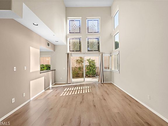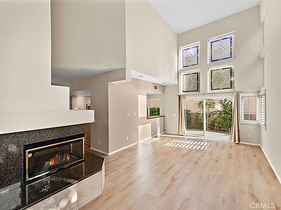 Beautifully updated end unit in the Vilamoura community of Rancho San Clemente! Offering a spacious and bright floor plan with incredible two-story ceilings, this 3 bedroom, 2.5 bath residence only shares one common wall with no one above or below. A plethora of windows flood the space with ample natural light and bring the outdoors in. The updated kitchen features granite counters, updated cabinetry, a center island and access to the backyard perfect for al fresco dining. A cozy two-way fireplace highlights the dining area and living room. All three bedrooms are on the upper level. Featuring a balcony, vaulted ceilings, fireplace and an updated primary bath, the primary bedroom is sure to impress. Perfect for relaxation and outdoor living, escape to the serene backyard patio which is enclosed and lined with lovely landscaping to enhance the space. Enjoy the added convenience of an interior laundry room closet and a two-car garage with direct access to the home. The Vilamoura community offers residents wonderful amenities including a relaxing pool, spa and BBQ area. The surrounding area of Rancho San Clemente also offers many perks including the Rancho San Clemente Park, Clarence Lobo Elementary, hiking and biking trails, the LifeTime Fitness center, shopping, dining and is just a short drive to Del Mar downtown and the beautiful San Clemente beaches!