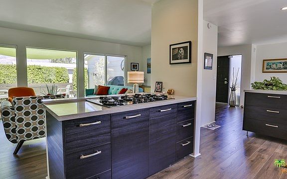 Prepare to be impressed - this is not your mother's manufactured home by any stretch of the imagination! Magnificently updated, this 2 bedroom home is sensational from start to finish! Open concept living fuses a vaulted great room featuring walls of glass & sliders leading to a covered deck offering magnificent mountain views, with a contemporary kitchen & top-notch appliances, plus a generous dining area. But wait! It gets better! Wait until you experience the comfort & privacy of the two bedrooms & two absolutely sumptuous bathrooms. Careful consideration was also given to the choice in upgraded flooring, dual paned windows & doors, two decks, terrific walk-in closet, separate laundry room with stackable washer & dryer & a 2-car garage with home direct access. Desert Sands is an active, friendly and highly sought after 55+ community. An unbelievable property like this is one of a kind!