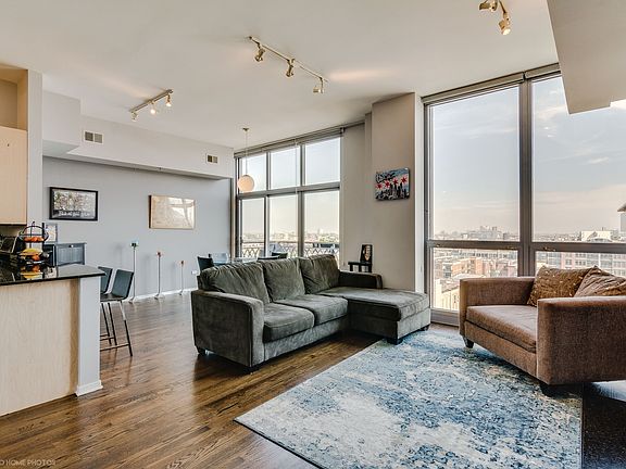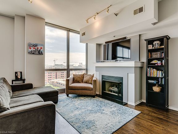 Don't miss this 2 bed/2 bath+ bonus office space. This sun drenched Penthouse unit in HOT West loop with unobstructed views will not last long. 10 foot floor to ceiling windows, hardwood floors, gas fire place and private balcony off the main living area. Kitchen complete with 42" cabinets, stainless steel appliances and oversized granite counters - plenty of room for 4 barstools. Gracious master suite with floor to ceiling windows; large custom walk in closet with custom closet organizers and an ensuite Master bath w/ double vanity sinks and separate tub and shower. Second bedroom enclosed with new glass and a large walk in closet. Need a home office? Designated built out office space in bonus room w/ desk and organizer. Enjoy In unit side by side washer and dryer. Garage Parking in building 25K additional. 24 hour door staff, Steps from the nightlife/public trans/loop/highway and State ranked Skinner School District.