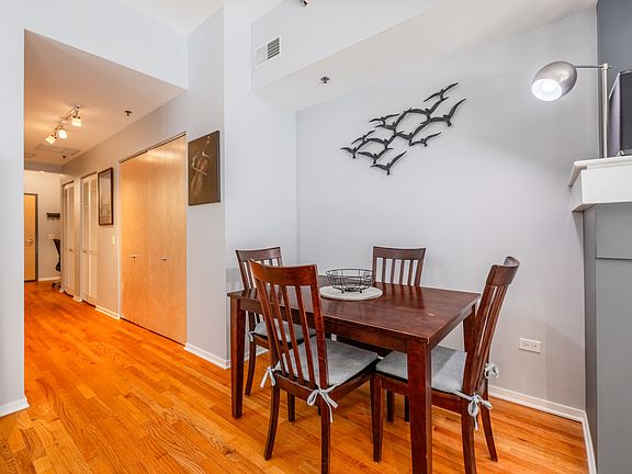 Welcome to your new home in the heart of Chicago's bustling West Loop! This move-in ready gem boasts 850 square feet of urban living with hardwood floors throughout, 10' ceilings, updated/SMART lighting and thermostat, great city views from the private balcony and a cozy fireplace to unwind after a long day. The open layout provides plenty of space and features a office/workspace nook perfect for working from home. The in-unit laundry makes chores a breeze, and the deeded garage parking provides convenience and peace of mind. This upgraded unit also features custom window treatments and natural stone bathroom tiles. You'll enjoy the ease of living in this midrise building with a doorman and elevator, offering both security and accessibility. Need some extra space for your belongings? No problem - this unit comes with additional storage for all your needs. Located in the vibrant West Loop, you'll have easy access to the neighborhood's trendy restaurants, lively nightlife, vibrant culture and multiple transportation options. With Skinner Park one block away, this home is perfect for those who appreciate urban living at its finest. Don't miss out on the opportunity to make this your own - schedule a showing today and experience the best of city living!