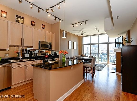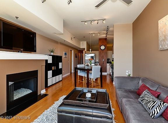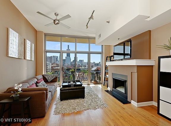 Desirable open concept 2 bedroom, 2 FULL bathroom in the red hot West Loop. Enjoy incredible city views through floor to ceiling windows which offer abundant natural light. East-facing balcony is logically situated off the living room to extend your living space for miles! Entertain guests in the functional kitchen with spacious 42'' cabinets, granite countertops, stainless steel appliances and island perfect for gathering. Floorplan separates your master bedroom, ensuite marble bathroom and walk-in closet from the second bedroom. Large bathrooms are rarely this generous in size and include updated fixtures. Extras include pretty hardwood, modern fireplace for chilly months, washer/dryer, plentiful storage plus 2 PARKING SPOTS, 1 owned and 1 rented (paid in full through 2016 and available to rent or buy next year). Perfectly situated near 90/94, blue el, across the street from Skinner School and Park, near fabulous dining and only a short stroll to Target! This home simply has it all.