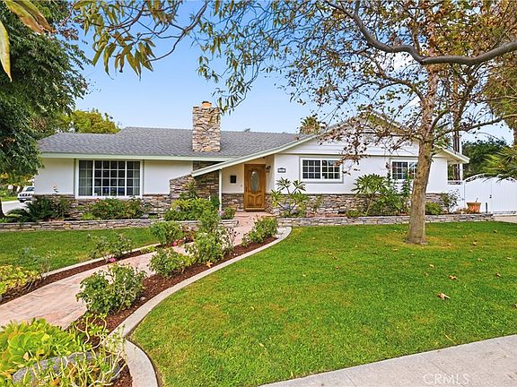This beautiful single story ranch home in Anaheim is a homeowners dream and an oasis. It’s in such a great and strategic neighborhood. As a corner house this home has tremendous curb appeal with wrap around lot and expansive front area, its front area is beautiful. The front is lined with mature trees and lots of upgrades inside shows pride of ownership. The interior has an open concept with kitchen and dining room very connected and looks out to the back pool area. The family dining area leads to an extended patio overlooking a gorgeous black bottom salt water pool with tropical setting and Island BBQ center. The awesome backyard is private and great for entertaining and enjoying "stay vacations" in your own home. Expanded concrete hardscapes. Kitchen has newer updated cabinets with granite countertops and appliances. Laminate floors and tile updated in the bedrooms and baths. You then have the main living room which is large and has bright open windows for natural light as well as a fireplace. Main bathroom shower has a seamless enclosure, jacuzzi tub and double sink vanity. The 4 bedrooms are quite good size with the largest in the back has doorway to patio and pool. The smaller bathroom remodeled and beautiful. The laundry is inside to the left of the kitchen. This home is incredible and, roomy and turnkey. Ceiling fans, central air/heating (new as of 2022), lots of built in cabinets, plenty of closet space for extra needed storage. It has two car garage on one side as well as a gated driveway and RV space on the other as well as two sheds for storage. Come and enjoy a tour to start the process of making this your forever home. Near schools, freeways shopping, theme parks, stadiums and more.