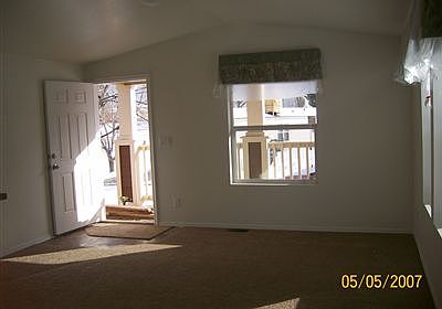 This 2014 Cavco model is a touch down! It has a cute porch on the front of the home that opens up to a open floor plan with a great kitchen with of course all new black appliances, gas stove, refrigerator, dishwasher, lots of wooden cabinets and drawers, two very spacious rooms with large closets, laundry area, master aunsuite has large shower with not only cabinet space but a linen closet. Outside you have a large storage shed, and off street parking and a great view of the Downtown Denver Skyline.