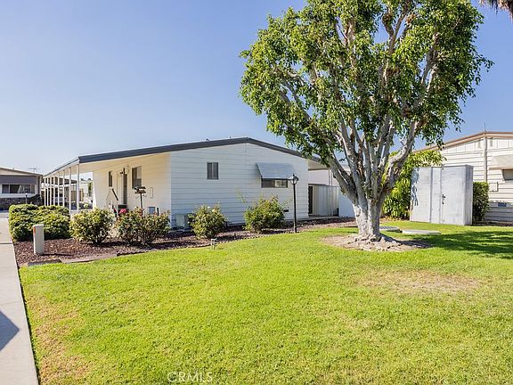 $20k PRICE REDUCTION. COZY AND CLEAN, FRESHLY REMODELED HOME LOCATED IN THE CENTRALLY LOCATED 55+ RANCHO FULLERTON MOBILEHOME ESTATES. A CRISP AND FRESH KITCHEN, COMPLETE WITH NEW WHITE QUARTZ COUNTERS IS AT THE CENTER OF THIS OPEN AND AIRY FLOORPLAN, ADJACENT TO THE DINING, LIVING AND BONUS ROOMS. ADDITIONALLY IN THE KITCHEN, BAR SEATING, DOUBLE OVEN, WALK-IN PANTRY AND GAS STOVETOP. PRIVATELY AT THE OPPOSITE END OF THE HOME, THE MASTER BEDROOM IS COMPLETE WITH MASTER SIZED CLOSET AND PRIVATE BATHROOM ENSUITE WITH AMPLE STORAGE AND WALK-IN SHOWER. GUEST BEDROOM, CENTRALLY LOCATED FULL GUEST BATH, INTERIOR LAUNDRY WITH WASHER AND DRYER, AND COMMON AREA BUILT INS COMPLETE THE INTERIOR OF THE HOME. TO THE EXTERIOR, THIS HOME INCLUDES 2 STORAGE SHEDS, A LARGE COVERED PORCH, AND COVERED CARPORT WITH ROOM FOR NOT ONE BUT TWO VEHICLES. TO THE REAR, AN ADJACENT, PRIVATE GREENBELT SERVING AS ITS OWN SMALL PEACEFUL PARK CREATING SPACE FROM REAR NEIGHBORS. THIS 55+ COMMUNITY IS SOUGHT AFTER AS IT IS CENTRALLY LOCATED, AND AMMENITIES INCLUDED ARE A PRIVATE CLUB HOUSE, PRIVATE LIBRARY, EXERCISE ROOM, COMMUNITY POOL AND SPA, ALL WITHIN THE WELL-KEPT GROUNDS IN FULLERTON, CA.