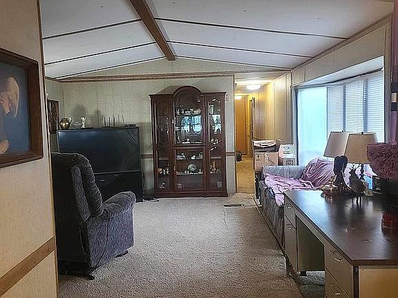Cozy home, front and back porch, plenty of parking, nice neighbors, private back yard with garden area if wanted, low maintenance and across from the school. The track is there for walking or running and if a person has grade school kids they could easily walk to school. The home has central heating and air conditioning unit that is only 2 years old. Programmable thermostat, digital, very nice. It can be furnished with what is inside the trailer now or we can remove the items. It's all negotiable. There is a storage shed in back and the space could be made into a little play space for children or pet. Washer/ dryer hook up.