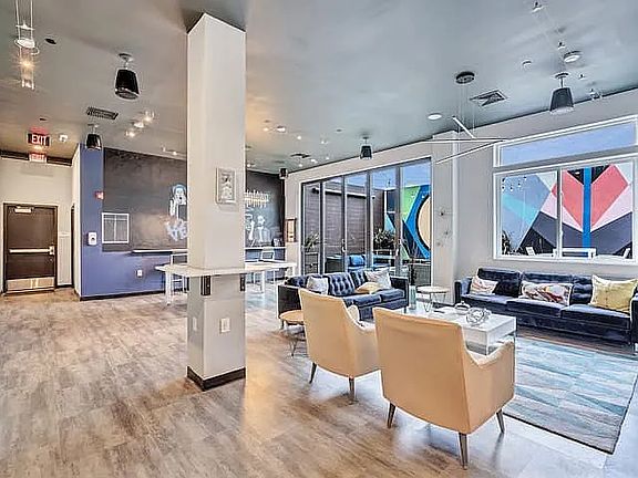Experience contemporary city living at 1200, a modern property designed with style and convenience in mind. You'll enjoy an array of desirable amenities and recent upgrades, including a stunning lobby with a unique wave-textured accent wall, a state of the art outdoor grilling and lounge area, and a vibrant indoor communal space with a billiards table and dynamic wall art. The bright and spacious resident lounges feature designer lighting, a chic modern fireplace, and large windows that connect seamlessly to an outdoor patio, perfect for relaxing or socializing. Inside the units, you'll find modern design touches like a gray-tone color palette, plush carpeting, and large windows with blinds. Located conveniently near local transit, dining, and shopping, this property offers a premium lifestyle for the discerning renter.