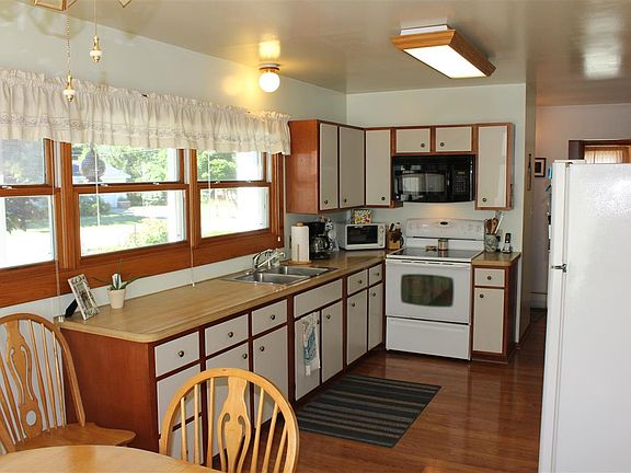 Excellent in-town location, this updated, 2 bedroom home w/ fenced-in backyard perfect for the kids, pets & grilling out. Close to schools and college. Well-flowing floorplan w/ open kitchen & dining area. Living room sliding glass door opens to large deck & backyard. Great starter home or rental income property. Basement w/ workbench, great for storage. Enjoy off street parking w/ driveway & detached garage. Bonus small barn shed for lawn tools & auxiliary storage. Enter mud room from garage. MUST SEE!!!