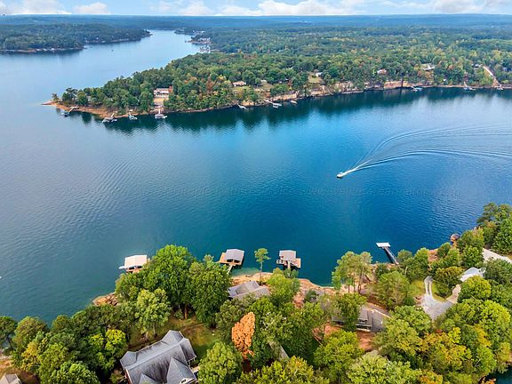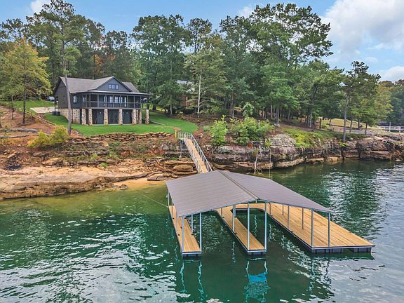 Smith Lake (Rock Creek) Take a look at this fantastic custom build sitting on the water! Just a short walk from the lower level and you are on the dock. The natural rock shoreline will certainly catch your eye. This floorpan is just ideal for lake living. The main level has master BR/BA, guest BR/BA, and a half bath. A covered porch spans the entire lakeside to capture those amazing sunsets! On the lower level, you have two guest bedrooms each with en suite baths. A neat bunk room is in the center with a full bath just outside. The lower living area has a fireplace and leads out to the lakeside lawn. The beautiful grass is irrigated with lake water. Located on desired Rock Creek with a western exposure and views of the famous cliffs just across the water. This is absolutely one of the best lots on the lake! By road, you are only 10 minutes to Trident Grille and Marina. By water, you are just minutes from Rock Creek Marina. Other amenities include: -Concrete driveway -Safe room -Storage room -Double slip boathouse with swim pier -Attractive stone retaining wall -Paved roads to the property