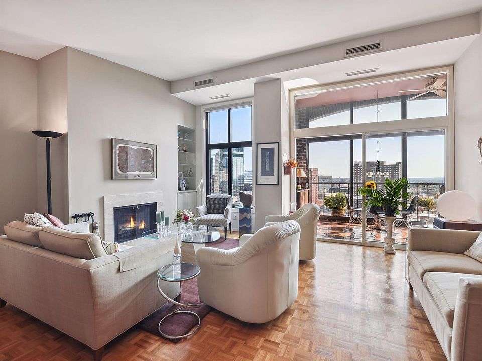 WOW! Unique top floor like no other condominium unit at Loring Green. Built out to custom specifications when building was under construction. Vaulted high ceilings, clerestory windows, fireplace, hardwood floors, unusually lge walk-in primary closet, refreshed baths & kitchen, breathtaking panoramic views of the city. Like a fine NY condo! So special! You will want to make this your home. 24 hr security, indoor pool, exercise, party room, tennis and more.