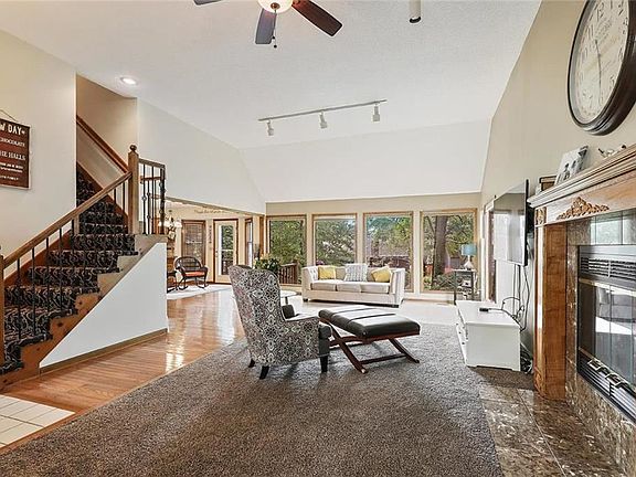 You must see this amazing, well maintained 2 story home in Olathe! Hwood floors throughout lower level. Massive, open living room pours in to E/I dining area and immaculate, large kitchen. 2 ovens, great open space for entertaining. Large mstr with martini deck, w/i closet, and giant mstr bth. Both spacious upstairs bedrooms have w/i closets. Finished lower level with 2 separate rec rms and a full bth & bdrm. Large multi-level deck in back with plenty of trees and greenery. Great location near 119th and Black Bob.