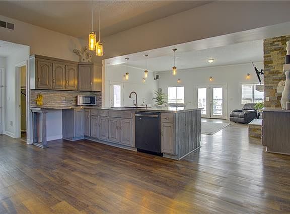 7.88 Acres - fenced with a pond! Are you Looking for the peacefulness of Country Living with Acreage -but still close to the City? Then Welcome Home!!! This home has a beautiful added 24 x24 Great Room with a rock fireplace that is open to the beautifully updated kitchen with intsant hot water above the stove, painted cabinets and a huge island with commercial grade stainless countertops. Off of the Great room you will find two patios, one of which is covered and perfect for relaxing in the evening or enjoying your morning cup of coffee. You will love the huge 40 x 40 polebarn built 2 years ago with a garage door and a tall sliding door! There is Plenty of room in the pole barn for your cars, a workshop, a man cave and all of your extra equipment! This home is located in the highly rated DeSoto School District and Close to Cedar Niles Park and Trails. All measurements are approximate. Buyers are responsible for confirming all information.