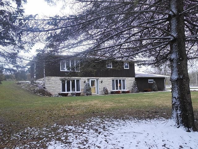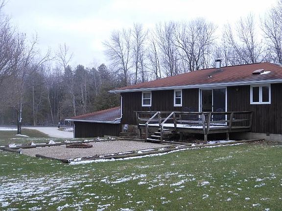 You dont find acreage like this very often! 6 acres; over is wooded and adjoins other wooded acreage so if you are a wildlife watcher; its spectacular! This walk-out style ranch features 2,024 finished sq ft w/2 large lower level FR's w/full size windows; one w/pellet stove, main level w/open concept floor design, efficient U-shaped KT w/raised panel oak cbnts, built-in grill and nice desk area, DA w/sliding doors to deck and patio, and a detached insulated/heated workshop/garage plus a 2.5 car att. garage.