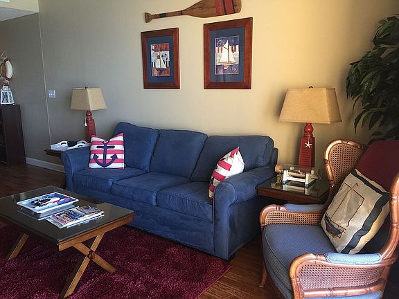 A RARE FIND at SterlingReef; 1st floor unit with HUGE 18x26ft awning covered balcony directly over the swimming pool with ENDLESS beach and pier views... Recently decorated in a nautical theme our SailAway @ SterlingReef comes fully furnished right down to the sailboat embossed dinner flatware!!! HVAC was replaced in 2018 and hot water heater in 2012...