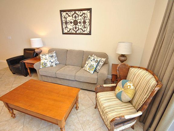 The spacious floor plan of this contemporary style two bedroom, two bathroom retreat will give you plenty of room to relax. The condo will comfortably sleep six people: we have a king size bed in the master bedroom, a full size bed in the second bedroom, and a queen sleeper sofa in the living room. Sliding glass doors open to the private balcony from the master suite and living room. You wonit soon forget the view of the sugar white beach and emerald Gulf from your balcony. The dining room table seats four and is separated from the kitchen by a breakfast bar that seats three. The well-equipped kitchen will allow you to cook as much or as little as youid like on your vacation. Wifi is included so you can stay connected while you're on vacation. Sterling Reef is the perfect beach vacation destination for either family fun or a relaxing getaway. Play in the pool or head to the beach for water sports rentals including jet skis, pontoons and parasailing. Walk across the street to Shipwreck Island Water Park or down the beach to the Bay County Fishing Pier. We are a short drive from Pier Park where youill find plenty of shopping, restaurants, and movie theaters. Other local activities include Ripleyis Believe it or Not, WonderWorks, and Gulf World, mini golf, go carts, etc.