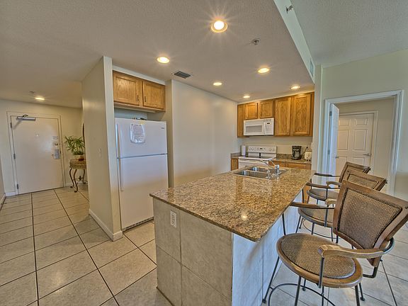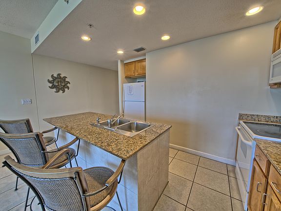 Newly painted unit and only two bedroom available right now. Direct gulf front unit.Open floor plan, granite counter top, tile all through out. This is a great rental investment.