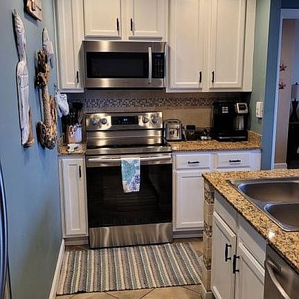 Imagine waking up every day in paradise! This beautifully decorated, open concept, 2 bed, 2 bath condo features a 25 ft balcony overlooking the gorgeous Gulf of Mexico. You have access to the balcony through the Master Bedroom and Living Room where the sunsets are unmatched. The fully equipped, gourmet kitchen features stainless appliances, granite countertops, raised panel cabinets and custom backsplash. The gulf front Master Suite which opens to the expansive balcony, has a king bed, flat screen TV, large closet, and en-suite bathroom. The master bathroom is exquisite with a newly renovated walk-in shower, double granite vanity, and tile floors. The Condo comfortably sleeps 5. The second bedroom is furnished with queen and twin beds and a flat screen TV. The unit also features a full-size, front load washer and dryer along with a code lock Owners Closet. Sterling Reef amenities include a seasonally heated bi-level pool, fitness center overlooking the gulf, sky BBQ terrace and the convenience of covered parking in the same building. Both of the building elevators were replaced in 2023. The condo is located just east of M.B. Miller Pier where you enjoy 1700 feet of unspoiled beaches. Take your fishing pole right out to the pier to catch your dinner! At the beach, there are beach chair rentals, banana boat, jet ski and parasailing rentals. This is the perfect condo for your personal oasis, or if you choose, it is turnkey, rental ready. Our average gross rentals for 2021-2023 were over $56,000 a year. It's time to own your piece of paradise!