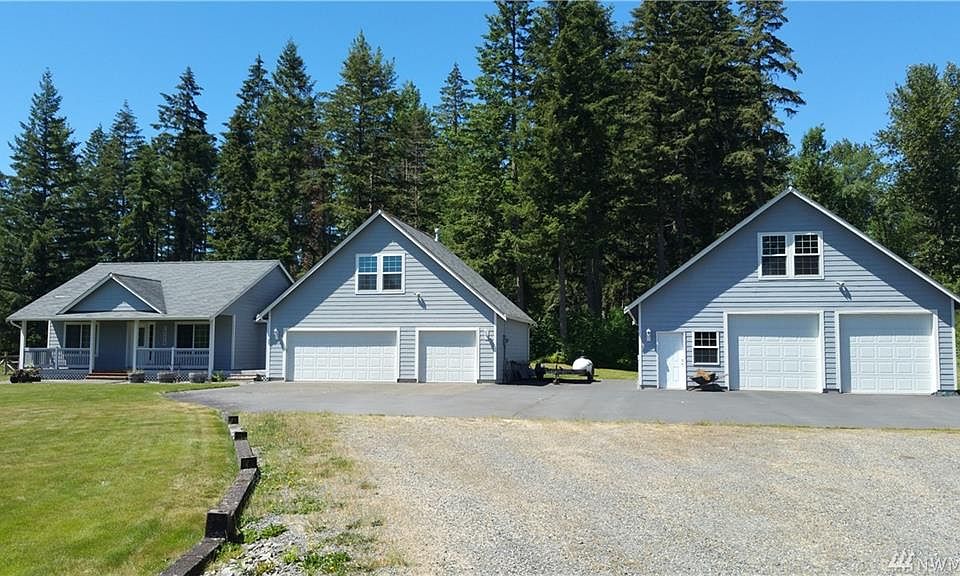 Looking for seclusion but close to town? Come take a look! Rambler with attached 3-car garage, detached 32x32 garage/shop, w/32x10 lean to and large bonus room above, sitting on 5.58 acres, fenced and crossed fenced for animals, asphalt driveway in front of garage and shop, views of Mt Rainier from several areas of the home, 3 bedroom, 2 bath home, formal dining/den, bonus room, open floor plan. Clean home and property!