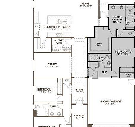 Explore this stunning Celeste home, ready for quick move-in on a homesite boasting driveway pavers and front yard landscaping. Included features: an inviting covered entry; a quiet study; a gourmet kitchen offering 42'' cabinets, quartz countertops, stainless-steel appliances, a double oven, a walk-in pantry and a center island; an open dining area; an immense great room boasting center-meet doors leading onto a relaxing covered patio; an impressive primary suite showcasing a large walk-in closet and a private bath with cultured marble countertops; a convenient laundry; a mudroom and a 3-car garage. This home also offers stone tile flooring, tray ceilings, additional windows and ceiling fan prewiring in select rooms as well as airy 10' ceilings throughout.