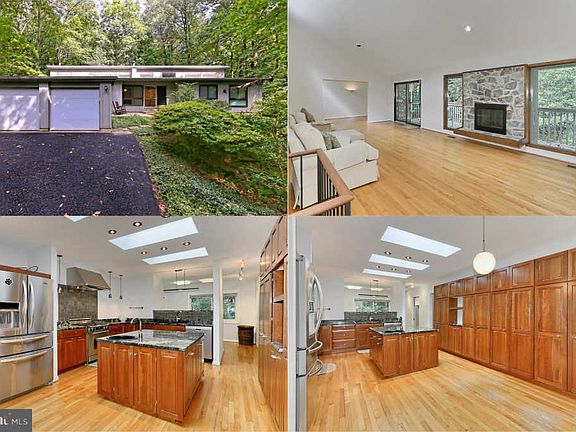 Contemporary 4 bedroom 3 full bath single family home with 2 car garage, 2 finished levels (including the finished walk out basement. 2 bedrooms & 2 baths on main floor and 2 bedrooms & 1 bath on lower level. Renovated master bathroom with frameless glass and body sprayers. The kitchen has also been renovated with a big center island, cherry cabinets, granite and stainless steel appliances. Hardwoods on main level and sculpted Berber carpet in the basement. Lot is on a cul de sac backing to woods, very private. Living room has a fireplace and deck overlooking landscaped & treed back yard. Home has a gas furnace, hot water heater, cooking and a gas back up generator. Lots of natural light with all of the skylights and transom windows.