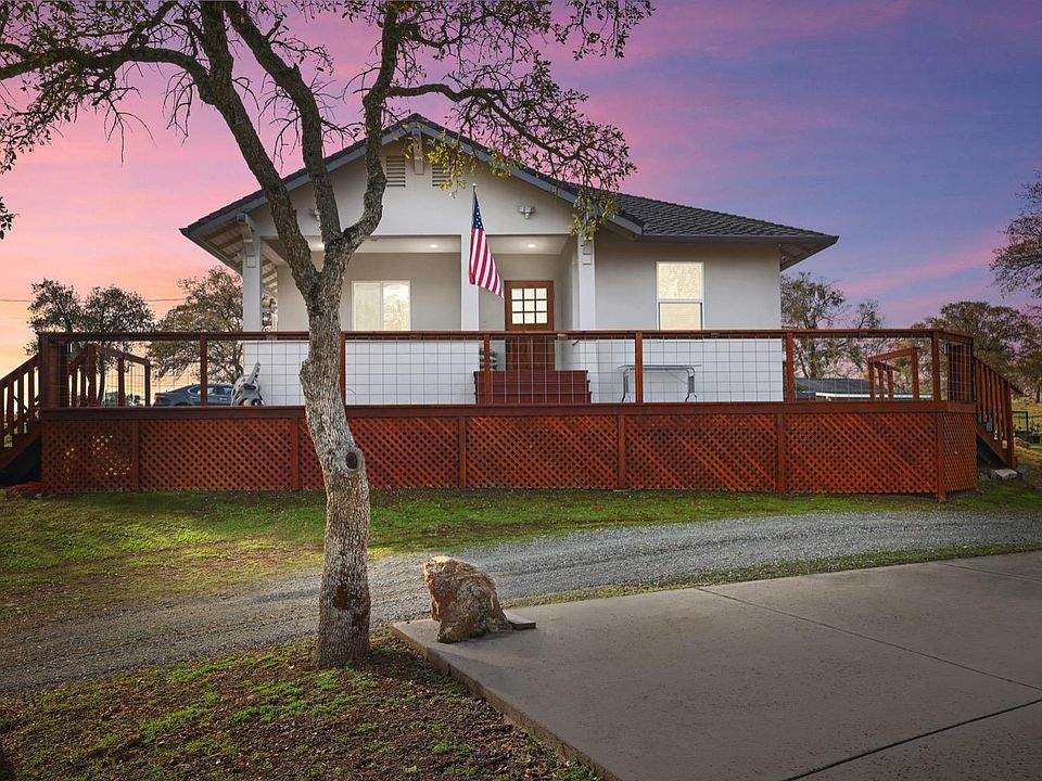 Welcome to 12012 La Grange Rd. Jamestown, located in the beautiful foothills of Northern CA. This 2.66 acre property features a panoramic view of the hills, pond with Koi fish, a year around natural spring, and private gravel road to the property. This charming home features a spacious kitchen with granite counters with lots of cabinets to store your kitchenware, a formal dinning room, cozy living room with Pellet stove, slate tile flooring, large laundry room with cabinets and sink. Bonus room features laminate floors, added built-in surround sound speakers, sliding glass doors, and large windows with an amazing view! Outbuilding has a Gym with Equipment to stay! Newly painted outside of home, New Entry gate, patio with Gazebo, Hot tub/Spa, boxed Garden, new front/back sprinklers, garage/workshop, covered RV/Carport, well house, fenced property with goats, and so much more! Located off Hwy 108/120 and near the Historic, Gold country town of Jamestown.