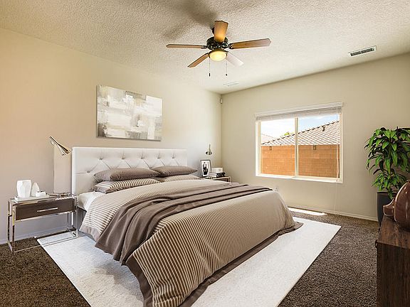 Take a look at this great Pulte home built in 2015! This is one of the most desired floorplans, and it offers 4 bedrooms, 2 full baths, a 2 car attached garage, and a huge open kitchen, living and dining room. This great single story home has tons of upgrades including upgraded large format floor tile, upgraded carpet, rich granite countertops, upgraded cabinetry, and stainless steel appliances. This home is conveniently located within minutes of Sandia Labs, Kirtland air force base, and I-40 for easy access to any part of town. The neighborhood has miles of walking and biking trails, and parks throughout. Many nearby grocery stores, restaurants and entertainment make this location highly desirable. Low maintenance landscaping and a covered patio complete the backyard. Act quickly!