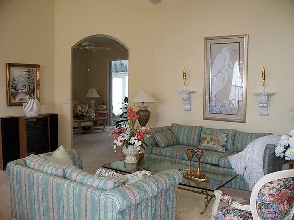 WOW! Golf Front Beauty with OVER 2000 Sq Ft under heat and air. This custom built home is LOADED with EXTRAS. The VIEW is absolutely spectacular. From the Florida Room you have magnificent views of the 8th green of the STONECREST golf course. This beautiful St George model with 3 bedrooms (3rd bedroom currently does not have a closet but the seller is more than willing to have it constructed) 2 baths, family room, florida room, formal lilving and dining and magnificent curb appeal. SOME of the extras in this great home are: Oversized 2 car garage with room for a golf cart, crown molding, 42" kitchen cabinets, corian counters, trash compactor, corner jetted tub in master, thermo pane windows, volume ceilings, folding stairs in garage, tons of extra storage and the list goes on and on. Several rooms of furniture are also negotiable. Please ask the listing agent for a list. Stonecrest is a gated golfing and active adult community that is GOLF CART ACCESSIBLE TO THE VILLAGES, shopping, doctors, restaurants...etc. Give us a call to come and see your new home!