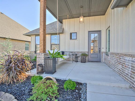 This Mustang Ridge SHOWSTOPPER is less than a year old, PRICED TO SELL-still under warranty & includes 4 bedrooms, 3.5 bathrooms with a dedicated study, plantation shutters & high-end designer finishes throughout. Kitchen features stainless built-in appliances, gas cooktop, custom cabinetry to the ceiling, gold hardware & large center island with extra storage space, opens to the dining area. Open concept living room is perfect for entertaining. Primary suite is full of natural light, the luxurious spa-like bath is complete with a garden soaker tub, dual sinks, walk-in shower, oversized closet & built-in dresser with direct laundry room access. Downstairs secondary bedrooms are generously sized & share a Jack ‘n Jill bathroom with double sinks. The upstairs bedroom is complete with full bathroom & closet. Back covered patio & HUGE fully fenced backyard with mature trees perfect for enjoying family & friends. The oversized 3 car garage can easily fit trucks & large SUVs, above ground storm shelter/safe room & full sprinkler system also included. Mustang Ridge community hosts holiday events including a 4th of July parade & food trucks weekly. Community also features a playground & pond with quick highway & turnpike access, close to restaurants & shopping in award-winning Mustang School District!