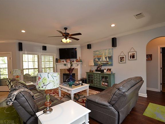 Dreamed of owning a Custom Home? This is a wonderfully designed home in Spanish Fort just minutes to I-10 for easy commuting. Split bedroom plan with open concept, beautiful archways, Gas log FP, surround sound with components to remain. Tasteful kitchen with custom cabinetry, gas stove, tiled backsplash, granite counters and over sized stainless refrigerator. Plenty of seating at the breakfast bar, breakfast room and formal dining room. Master bedroom has tray ceiling with canned lighting. Master bedroom is roomy with double vanities, walk-in closet, jetted tub and newly tiled shower with multiple shower heads. Spare bedrooms are carpeted and sizable. Spare bath has double vanities and tub/shower combo. Laundry room has laundry sink leading to mudroom with built-ins for storage and bench for seating. Oversized two car garage for extra work space or storage. New screened back porch leads out to open patio with brick fire pit. Private fenced backyard! Home has fresh paint in most areas, some updated fixtures and new landscape.