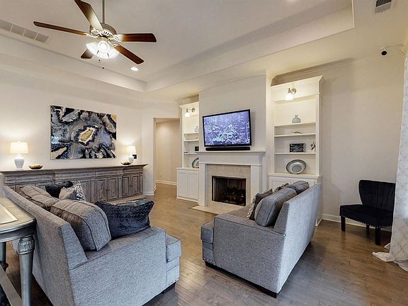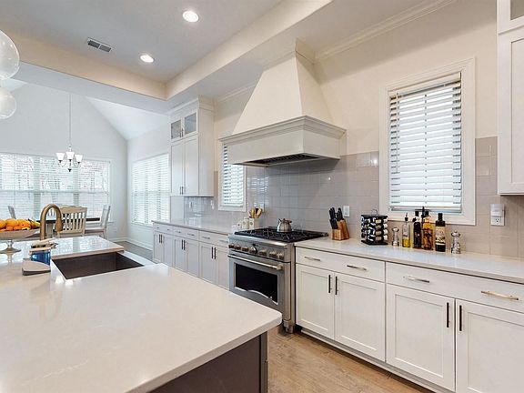 Exquisite 4028 SF home in Arlington w/5 BRS and 4 BA, Master BR down with beams, freestanding tub in MBA, shaker style cabinetry throughout, stainless appliances w/professional 6-burner gas range, wine room w/cabinetry, split finish stair treads with ornate iron railings, upgraded light fixtures, trayed ceilings, bonus room w/bar sink, undercounter fridge & cabinets, separate additional media room w/vaulted ceiling, large crown mold throughout except in bedrooms, hardwood almost throughout.