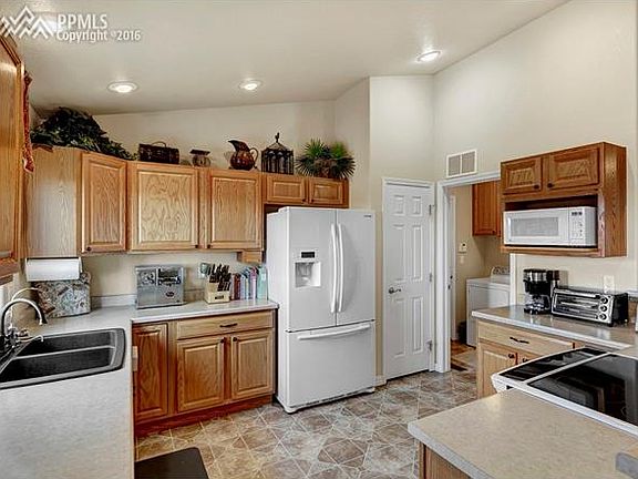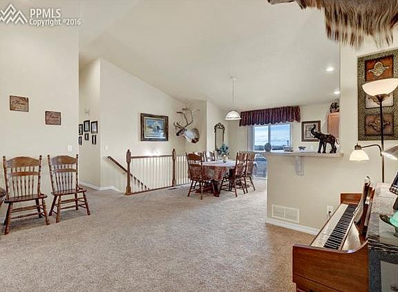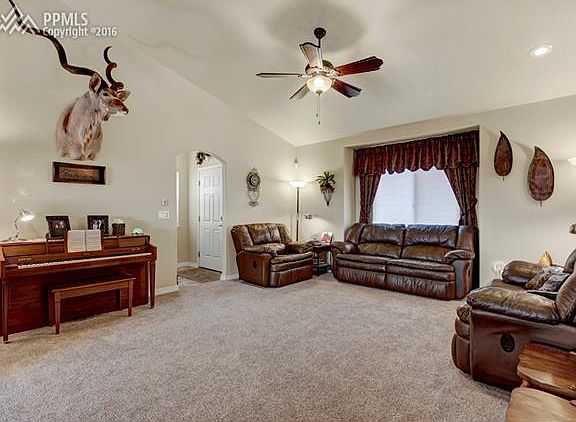 Beautifully Updated Rancher with Finished Basement on Premium Lot Backing to Open Space/Seasonal Pond w/Pikes Peak Views! Brand New Exterior Paint! Newer Carpet Throughout! Brand New Roof! Brand New Ceiling Fans in Master Bedroom & Living Room! Central Vacuum! The Kitchen Features; Newer Upgraded Deep Composite Sink, New Faucet & Sprayer, Newer Appliances Including French Door Refrigerator w/Bottom Freezer, Electrolux Free-standing Self-Clean Double Oven w/Convection & 5-Burner Smoothtop Stove, and Dishwasher! Bathrooms Boast Upgraded Light Bar Fixtures! Main Level Bathrooms have Newer Toilets with Soft-close Lids! Master Bath Features Newly Tiled Shower & Shower Door and New Built-in Medicine Cabinet for Handy Storage! Laundry has Upgraded Cabinetry! Blinds Throughout! Insulated & Sheet-rocked Garage! Central Air Conditioning! Upgraded Window Well Covers and Window Wells Each Have Separate Drains! 2 Great Recreation Centers to Enjoy! Very Convenient to All of Falcon's Amenities! For Low Maintenance Living with Lawn Watering, Lawn Mowing All Taken Care of and More..............Take a Look Today!