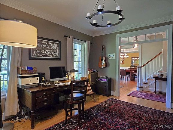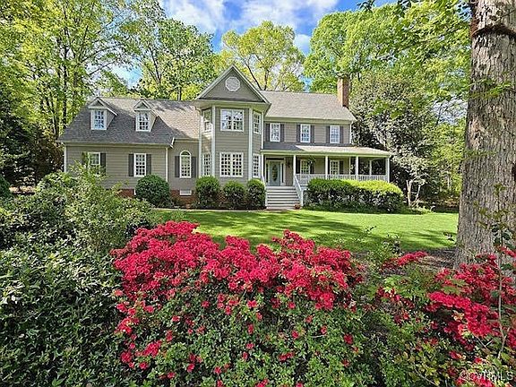 Welcome to 12013 Reeds Bluff Lane, a beautifully maintained, custom-built home located off Old Gun Road, between Robious and Cherokee. Nestled in a one-street cul-de-sac neighborhood where homes are rarely offered for sale, this 3,894 sq. ft. gem features a charming wrap-around porch and showcases the unique craftsmanship found throughout this coveted neighborhood. This home offers a wide range of distinctive features, including transom windows, skylights, hardwood floors, dental crown molding, a bar, custom bookcases, front and rear staircases, and a walk-up attic. The home has two working fireplaces and an oversized two-car garage with loft storage. All interior trim and moldings are in excellent condition, with brand-new carpeting upstairs. The recently renovated kitchen includes leathered granite countertops, a farmhouse sink, subway tile backsplash, and new appliances, including a gas stove, oven, microwave, range hood, and a GE Cafe Series refrigerator. Relax on the wrap-around country porch, the newly redone synthetic deck with a fanned gazebo, the front porch swing, or the rear patio, and enjoy the serene, beautifully landscaped yard. The property is rich with river wildlife, including hawks by day and owls by night. A large garden shed with electricity provides ample storage for yard equipment. Nearby amenities include Robious Elementary and Middle Schools, James River High School, and James River access at Robious Landing Park. You'll also find shopping at Belgrade Shopping Center, dining at Ruth's Chris and other unique restaurants, and convenient access to Bon Air, Route 288, and Chippenham Parkway. This one-of-a-kind home won't last long!