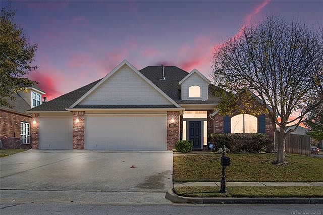 Coming soon. No showings or offers until 11/26/2021. 3 beds plus office, 2 full baths, 3 car oversized garage, and covered patio. Great open floor plan, formal dining & separate breakfast nook, kitchen open to family room, large master bath w/Jacuzzi tub & walk-in shower, oversized master closet, and a brick gas burning fireplace. Neighborhood park, basketball court, and playground. Sprinkler system, corner lot, Jenks schools. office,w/doors, covered patio, fully fenced yard. Open house Sunday 2-4.