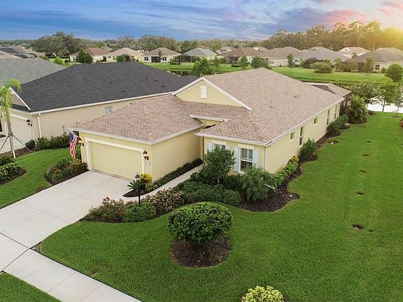 Spectacular Lake View Pool Home! Tropical landscaping and inviting salt water pool with ledge seating. Bright great room with disappearing sliders opens to expansive paver lanai and sparkling pool, great for entertaining, simply relaxing and enjoying stunning sunsets. Beautifully finished with neutral tones, diagonal porcelain tile, abundant recessed lights, ceiling fans and custom window treatments. Open great room adjacent to spacious kitchen and dinette that overlooks the lake and pool views, features gleaming quartz counters, tile backsplash, soft close cabinets, breakfast bar with on-trend stone finish wall and stainless steel appliances including French door refrigerator. Serene lake vistas from owner's suite with tray ceiling, his n'her closets, double bowl vanity with quartz countertop and frameless tiled walk-in shower. Two private guest bedrooms & baths are ideal for family or guests and den that provides space for an office or hobbies. Great "Man Cave" design with an oversize 22' long garage plus 4' x 6' tandem area, safe racks, equipment racks, insulated garage door, Epoxy floor and custom stripe design painted walls! Meticulously maintained home & garden, separate laundry room with cabinets & utility sink, custom screen door, 16 SEER HVAC & Radiant Barrier insulation completes this delightful home in Forest Creek with tree parks, 18 acre lake for fishing & canoeing, clubhouse, pool & fitness, immaculate, you have to see this home!