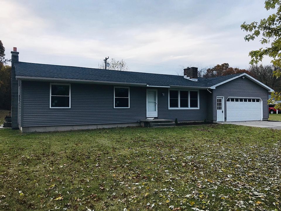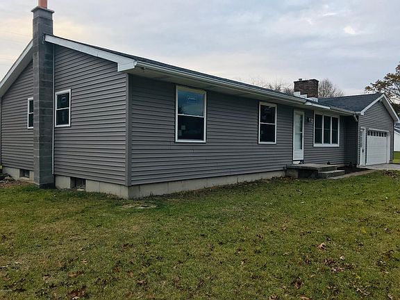 Newly remodeled with brand new carpets throughout the home, siding and some windows in a beautiful spacious interior with a two stall attached garage and huge pole barn on 2.31 acres with a country feel but not to far outside of town.