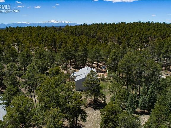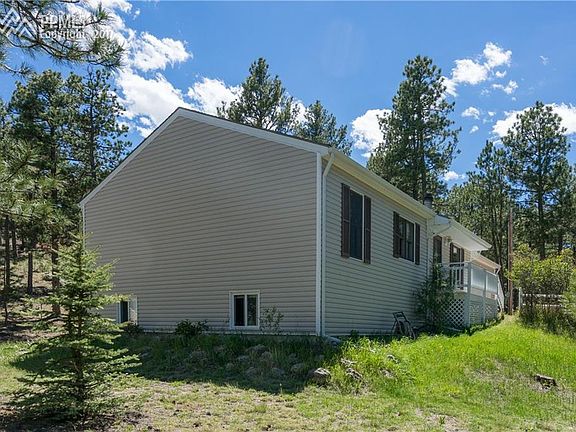 Wonderful rancher on 5.37 treed & meadow acreage with total privacy & rocky outcroppings! Enter into the wonderland with one of the prettiest lots in Woodlake! Large ponderosa & spruce along, with a hillside, offer privacy & adventure. There is nice meadow for grass & RV parking. The totally remodeled home has a kitchen & dining room that also service as a four season sunroom, perfectly frame the scenic landscape. Completing the package is a finished two car garage plus a 28x28 mulituse outbuilding with water and elec. Throughout the home, large,Anderson windows bring the light & forest inside.The main level is complete with formal living and formal dining (or office), large master, and full bath. The master has been expanded and also features a sitting or desk area. The full bath on the main features a custom vanity and granite countertop, tile floors, with jetted tub. Downstairs is a rec room, two more bedrooms, plus another full bath plus the laundry. Three ways to heat, the two wood-burning stoves, the electric zoned heat or the FAG, ducted heat. Natural gas is ran to the lot. This location is a few minutes from the subdivision's riding/walking easements and trail 1.75 mile long trail. Zoned for horses and hobbies, bring your bags and unpack! Only 50 minutes to Denver and 25 to Colorado Springs!