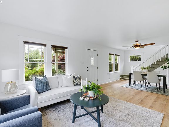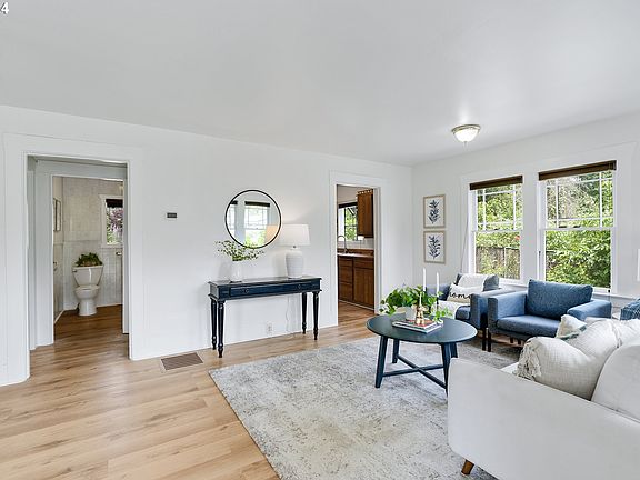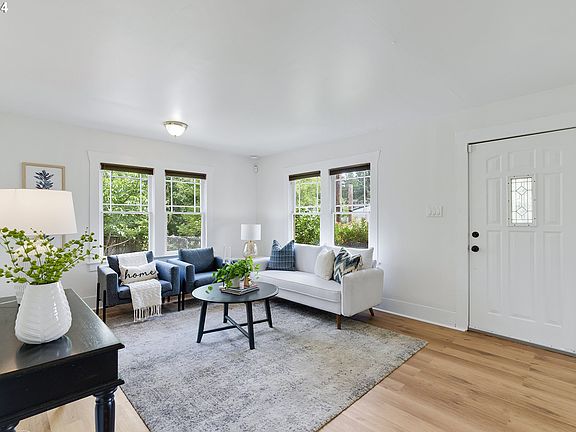 Inviting you to this charming SE Portland bungalow! This 2 bed + 1 bath gem boasts newly installed wood flooring that adds warmth and character to its light-filled interiors. Fresh interior and exterior paint gives it a crisp, appealing look. Situated on a spacious fenced lot with a gate, this home offers both privacy and security. Embrace your green thumb with raised beds for gardening enthusiasts and enjoy the yard for outdoor fun or relaxation! Need parking or workshop space? There's a detached 2-car garage waiting for you. Owned Solar Panels make this home energy efficient. Conveniently located near SE Foster Rd and I-205, commuting is a breeze. Please see the attached Home Improvement Summary for more details. Welcome Home! [Home Energy Score = 5. HES Report at https://rpt.greenbuildingregistry.com/hes/OR10006529]