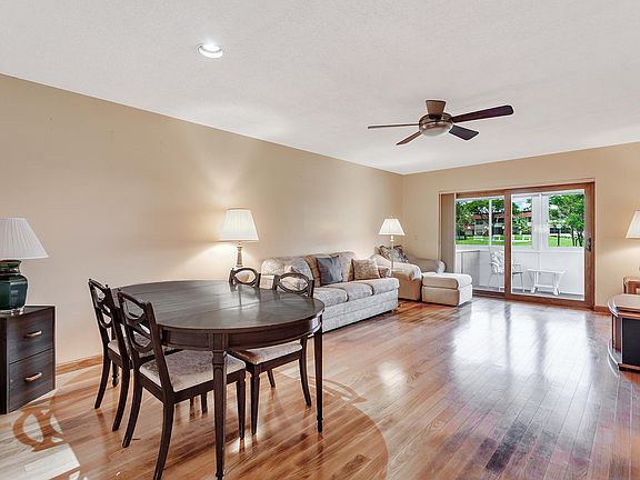 Wait till you see this one on the ground floor.This unit is truly move in ready. This beautiful updated END unit with no one above you. This.has impact windows, new laminate flooring, New hardwood flooring in the living room and dining room Remodeled kitchen with a cute snack bar and NEW electrical panel.. Updated bathrooms as well. Nice large Lanai with a view of the pool and garden. No unit is directly behind u as this is very private. Many amenities to enjoy such as pool, clubhouse, tennis and shuffleboard. Awesome location as minutes to shops and restaurants and 10 minutes to the Wellington Mall. All room sizes are approximate.