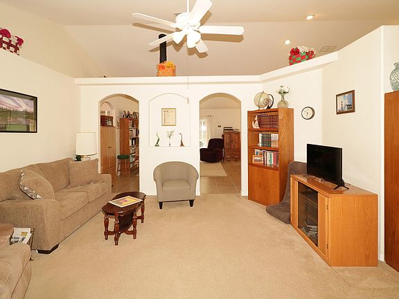 - Breakfast Bar, Open Floor Plan, Pantry, Walk-in Closet(s), Ceiling-Vaulted, Drapes, Wood Cabinets, Counters-Solid Surface, Pull Down Stairs, Wood Burning Stove