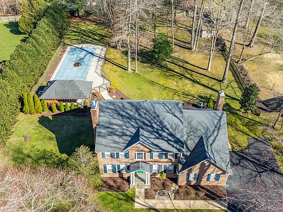 Experience the delights of a waterfront community living in this custom-built brick home situated on 1 acre within the prestigious Patuxent Palisades community. Delight in outdoor luxury with a 20’ x 50’ inground Gunite heated pool, complemented by a cabana with a full bath, built-in bar, and covered patio, offering a retreat for relaxation and entertainment. The pool area is fenced with an aluminum designer fence, ensuring privacy, and features an outdoor shower. A spacious 30' x 15' deck overlooks a private wooded backyard adding to your outdoor entertainment possibilities. Additional highlights include floodlights, ample concrete decking, a wall of holly trees for extra privacy, a fenced-in dog run, and a storage shed, creating a meticulously designed outdoor space. The grandeur of this residence unfolds as you enter through the decorative front door with etched oval glass, to be greeted by a sparkling crystal chandelier illuminating the dramatic two-story foyer. The beautiful hardwood floors continue throughout the first floor. A formal living room featuring a propane gas fireplace and estate shutters seamlessly connects to the formal dining room with chair rail, recessed lights and bump-out bay window. First-floor home office with French doors, built-in cabinetry, computer countertop, and wood plank flooring, combine efficiency and classic charm for a productive work environment. A custom powder room provides convenience for family and guests. The custom kitchen boasts granite countertops, stainless steel appliances including a professional grade range, subway tile backsplash, soft closing cabinets and drawers with pull out shelving provides ample storage. A sunny breakfast nook connects the kitchen with the family room creating an open concept gathering space. The sunken carpeted family room conveys comfort and style with its designer propane gas fireplace, oversized slate tile hearth, and wood mantle. Estate shutters, recessed lights, blackout drapes, and crown molding elevate the cozy ambiance, perfect for private relaxation and entertainment. Venture upstairs to find 4 bedrooms 2 baths and hardwood floors connected by an extra wide hallway. The owner's suite has an elegant brick fireplace, crown molding and recessed lights. The renovated ensuite bathroom exudes luxury boasting a raised dual sink vanity, granite countertop, standalone soaking tub, plus an oversized step-in shower with multi-spray showerheads. Full finished basement features a spacious open recreation room with a 4th fireplace and half bath, which is perfect for indoor entertaining. Additional features include: New HVAC system, New Hot Water Heater, all new gutters and downspouts with gutter guards, oversized 2 car garage and professionally landscaped yard. Immerse yourself in the amenities of this waterfront community, including a pier, boat slip, park, and pond. This residence invites you to experience the serenity of Southern Maryland's waterfront lifestyle.