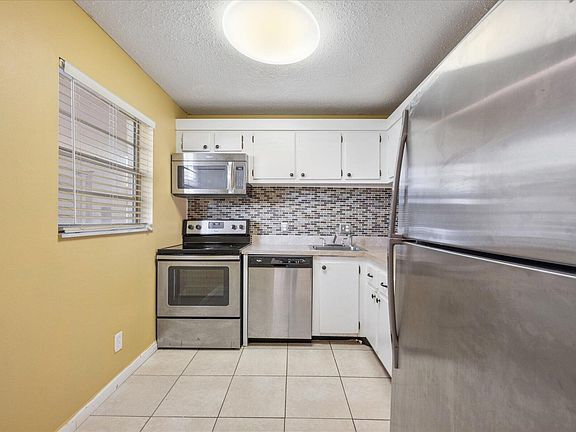 Beautiful 55+ 2 bedroom 2 bath condo, best priced unit on the first floor! This condo has been well maintained and features tile floors through out the main living area, Vinyl floors in the master bedroom and carpet in the second bedroom. Kitchen has stainless steel appliances and has been updated from the original. This unit has been freshly painted and is very spacious with lots of storage space. The AC was replaced 2 years ago and barely used. Conveniently located across the hall to the common laundry room. As well as across the street from clubhouse & 1 of 3 community pools & shuffleboard! You can get quick access from your sun room which is also very spacious! Greenview Village is located across the street from Commons Park that offers many great recreational activities!