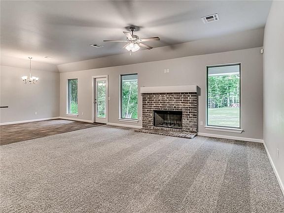 Unbelievable views exist in the new home located in award winning Edmond Schools on a .64 acre lot (mol). Warm wood tile floors set the stage for the quality you will find throughout. The cozy living room features a wood burning fireplace and stainless steel appliances. This is a true 4 bedroom home with the master suite featuring dual vanities, walk in closet, soaking tub and shower. The secondary bedrooms are spacious as well and located near the additional 2 bathrooms. The home is completed in time to enjoy summer in your private backyard with water views!