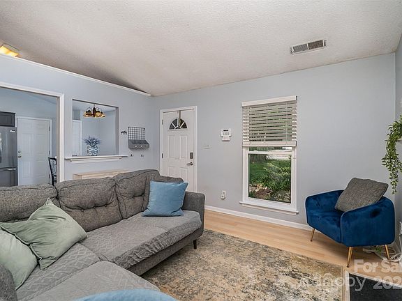 Welcome to this delightful residence in Steele Creek! Offering 3 bedrooms and 2 bathrooms, along with a one-car garage, this home is impeccably maintained, offering ample space and an open layout. Stainless steel appliances (2024 oven) throughout kitchen with updated tile and laminate flooring with the exception of one room with carpet. The living room features vaulted ceilings, leading out to a patio overlooking a tranquil and private backyard, which adjoins HOA-protected land, ensuring your privacy for your future.