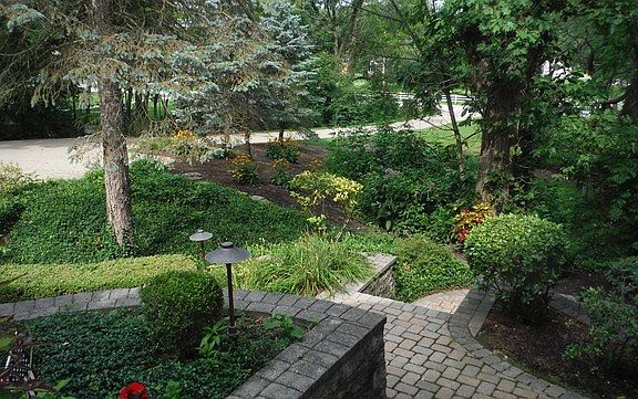 Woods and positioning high up the hill give this home exceptional privacy and beauty. The long paver brick drive, walks and patio are surrounded by beautiful perennial gardens with sun, shade and partial shade areas adding to the woodland character of the lot. Owner's favorites with this home are its generous size rooms, pool/patio area for summer fun and fireplaces and wood burning stove for those snowy winter days. Floor to ceiling windows in the great room draws in the outside. Luxurious wood paneled study. Detached 1 car garage building or use as pool house. Approx. 1,600 sq ft of unfinished basement area ready for finishing with roughed in plumbing and 2nd stairway access to first floor utility area. Unfinished walk-in attic space for possible additional finished space. Pool is heated and comes with a robot automatic cleaner.
