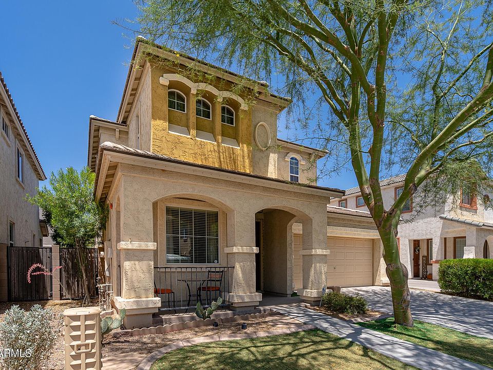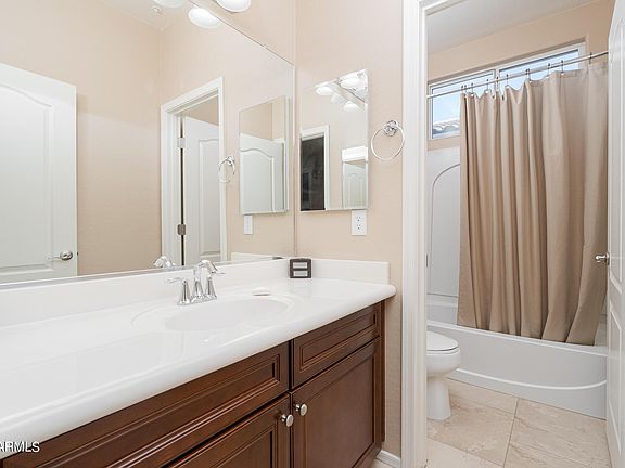 This 3 bed + den home is absolutely ready for move-in and comes fully furnished complete with kitchen items, bath towels, bedding, etc. Nothing should be needed if you wish to use this home as a retreat or as a furnished rental. Features upgraded cabinets, granite counters in kitchen, 20'' tile in entry and wet areas, full bathroom on the main level between the den and main living area, master bath with separate tub and shower, walk-in closet, artificial turf grass (no mow) in front and back yards, extended pavers patio in back provides a great space for entertaining, water softener system, resort feel with community pool and park just around the corner. Community park and pool.