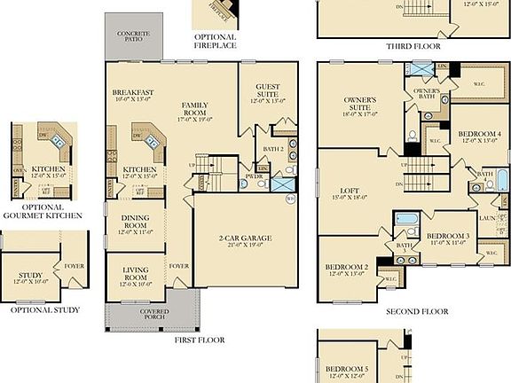 The 1st floor features luxury vinyl plank throughout, Guest Suite, study with French doors, Gourmet Kitchen with double wall ovens, gas cooktop and direct vent microwave, Owner's Bedroom and 3 large bedrooms on second floor with large loft. Kitchen with 36” by 42” castled cabinets with crown molding, 9” deep sink with Moen Goose neck Faucet, Quartz counter tops, subway tile back splash, Pendent light pre-wires, Wrought iron spindles on first floor, crown molding in foyer, ceramic tile in bathrooms, Owner's bath with over sized tile glass enclosure and MUCH more!
