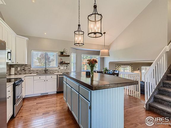 Welcome to this move in ready updated trilevel withon a corner, fenced in, professionally landscaped lot. Fresh exterior paint, new driveway and new craftsman garage door welcomes you into the home with hardwoods throughout the main and lower level. The main floor is all open with remodeled kitchen with quartz countertops, custom cabinets, stainless appliances, huge island to gather as well as eat-in space and living room. The lower level has a gas fireplace and access to the stunning backyard with stamped concrete patio, custom pergola, large shed, sprinkler system. The basement is not finished however there is a almost finished half bath with a rough in, laundry room and storage area including the high efficiency furnace with humidifier, central a/c and tankless water heater installed in 2017. The upper level has 3 bedrooms, primary bedroom and bath plus a walk in closet, updated main bath, 2 additional bedrooms and a nook which can be easily converted to upper level laundry. This home is move in ready with a super location in the neighborhood. Well maintained home which also includes solar panels from Sunrun (buyer will need to qualify for lease). Have a new home for the holidays!