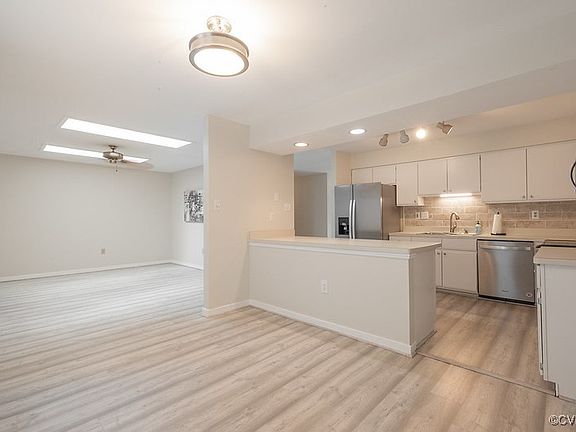 Best kept Secret in Short Pump! Worthington Hills is all the things! Location! Location! Location! Small Townhome community of 70 homes with garages. Just four cul de sacs of quiet tranquility within a mile and a half of Short Pump Mall. Every store and restaurant you'd want to patronize are within a few miles as well as multiple entrances/exits to all local interstates and roads. Extra bonus..walk to the grocery store, CVS and Ray's! Thinking you don't want to navigate steps anymore...this home is for you! Two spacious bedrooms with ensuite baths all on one level. Newer laminate flooring throughout. The primary bedroom has a tub/shower combination in the bathroom and the 2nd bedroom has a shower in its bathroom. The kitchen is open to the dining area with a peninsula type of breakfast bar set up for ease of entertaining and enjoying your guests while cooking in the kitchen. All appliances convey. The living room has a wood burning fireplace with mantle and slate hearth as well as skylights. Step into the backyard oasis and enjoy the privacy that is hard to find in a townhouse lot. You'll find a double level deck with nice plantings surrounding the perimeter of the fenced rear. A perfect setting to sit and enjoy all the birds and chipmunks in the community. In the front of the home there is a covered porch of trek like decking and small courtyard with a brick wall. Washer and dryer convey. The GARAGE...has space for storage and your car! The pull-down attic is located in the garage and there is ample storage in the house with 3 linen closets, a coat closet and 2 walk-Ins. The HOA covers the majority of the exterior maintenance, the lawn maintenance both front and back, snow removal, trash service twice a week and gutter cleaning.