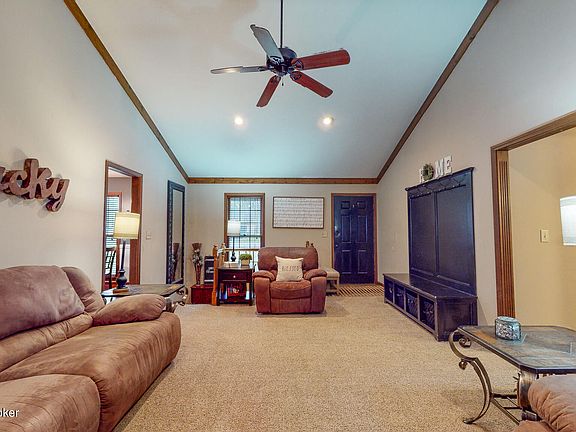 Beautifully maintained ranch located in the City of Goshen. This North Oldham School District home features vaulted ceilings, new carpet, and updated mechanicals. This lovely ranch boasts 2 large main-floor bedrooms with adequate closet space, plus a large living space in the basement. The current owners are utilizing the basement as a full primary suite, with a large walking closet and spacious bathroom. The kitchen opens to a picturesque backyard featuring a large deck and firepit. The 2-car garage has new overhead doors. A new city park featuring pickleball courts and the Creasy Mahan Nature Preserve is in close proximity to this immaculate home.